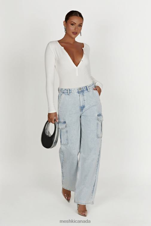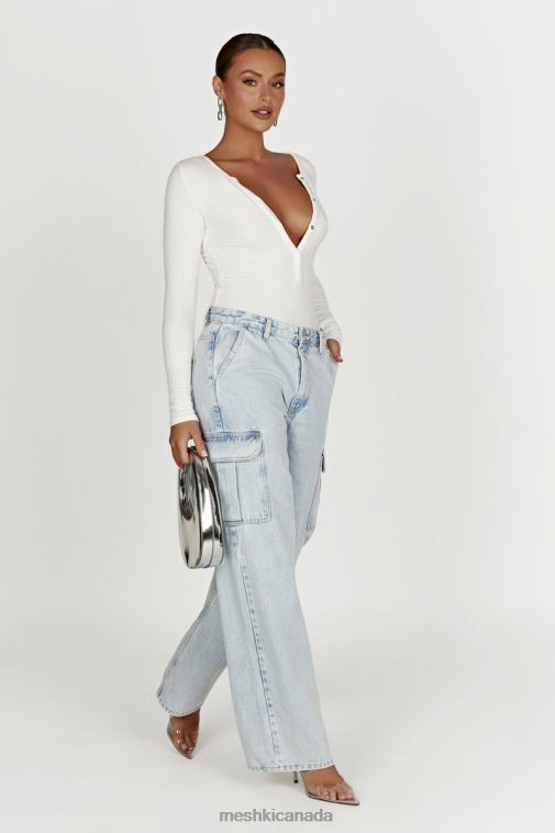 Meshki White Naomi Long Sleeve Bodysuit Clothing JN88N925
