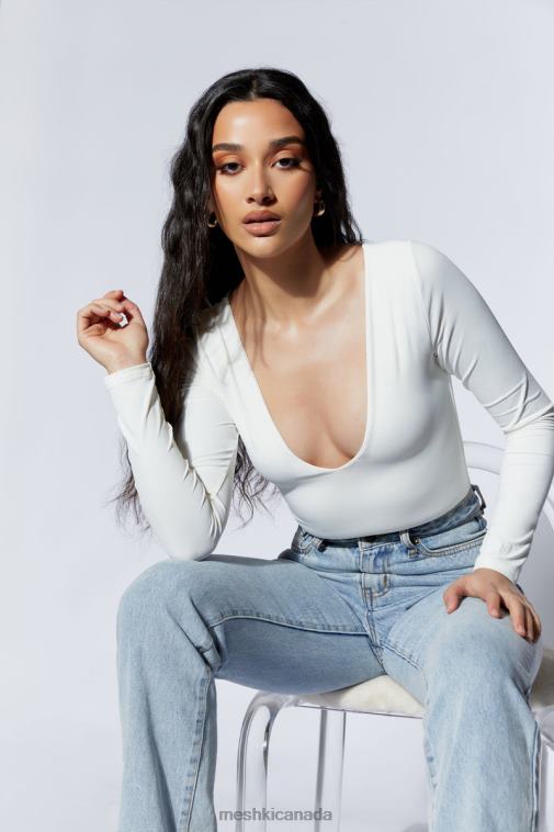 NIA is a must-have. A closet staple. Every girl needs a comfy, dependable clothing item that always makes them look good and feel good with minimal effort. That's Nia. She's a bodysuit classic - so she'll always stay tucked and seamless - with long sleeves and a deep V neckline. She's a beautiful combination of casual and kinda sexy, and she'll always highlight your decolletage and collarbones in the best way. Dress her up with our Lola Ruched Mini Skirt to create a fetching silhouette.