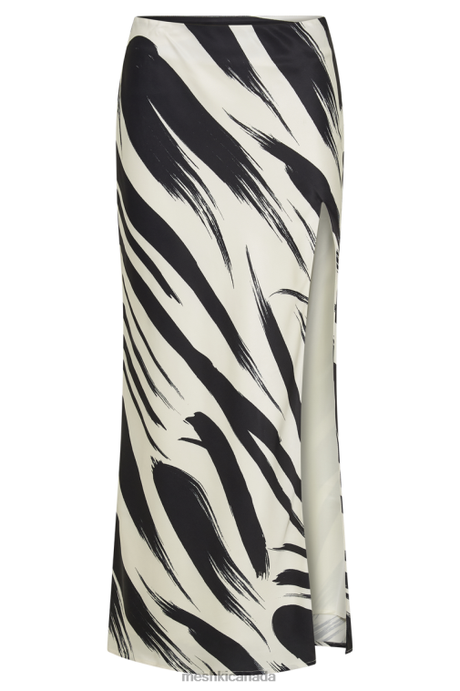 This is a printed, mid-rise maxi skirt with a thigh-high split at the front left and clean side seams. Its fabric clings softly to the body in a way that highlights curves and shapes without being restrictive. Its beautiful abstract pattern elevates its classic, simple silhouette, turning it from a basic bottom to a bold, free-spirited statement piece. Pair it with a sleeveless cropped top like SARA Square Neck Crop Top or a simple fitted camisole for a casual look.