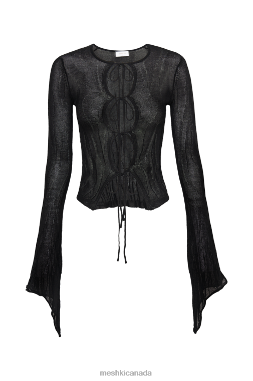 Meshki Black Akari Flare Sleeve Knit Top Clothing JN88N830