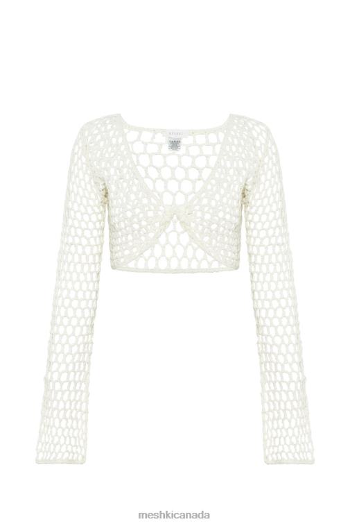 Meshki White Hallie Twisted Cropped Crochet Top Clothing JN88N960