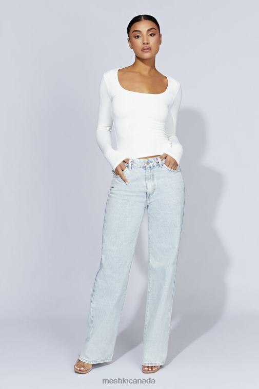 Meshki White Heather Scooped Long Sleeve Top Clothing JN88N947