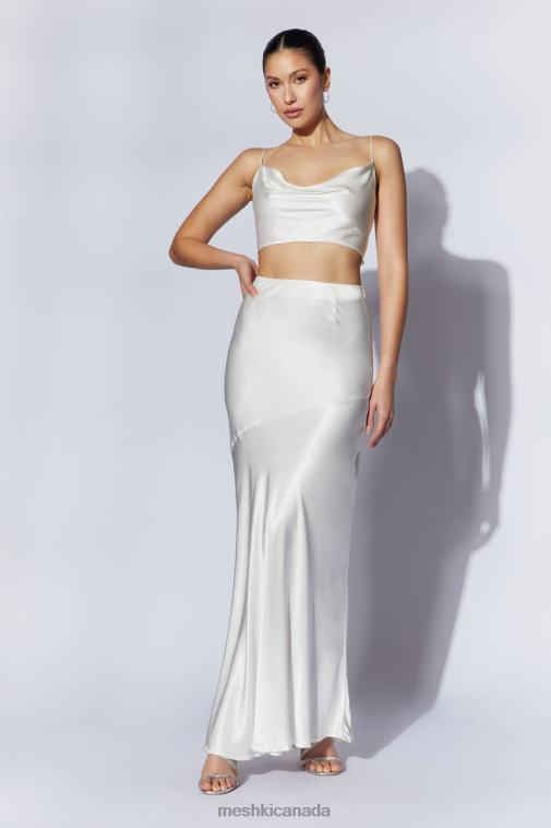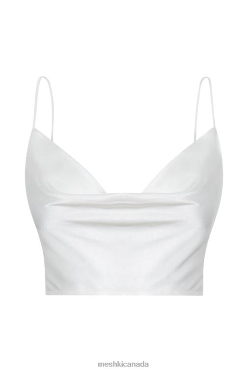 Meshki White Poppy Satin Cowl Neck Top Clothing JN88N1032