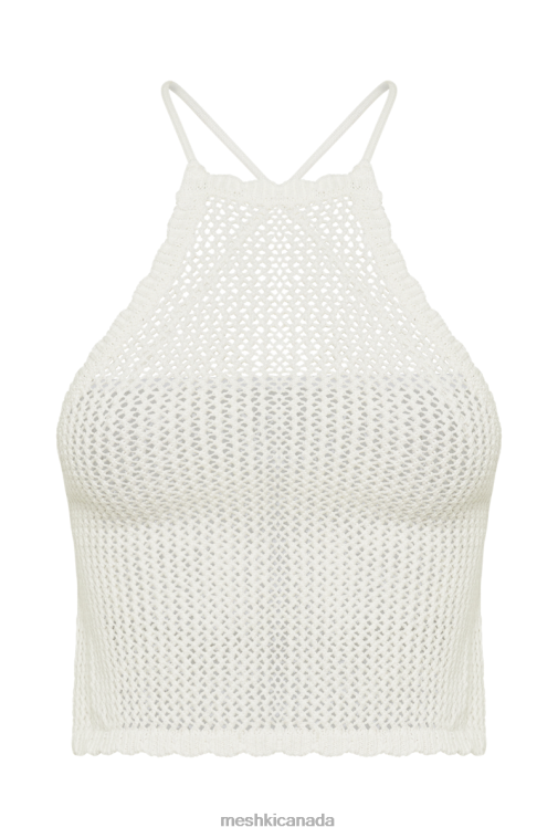 Meshki White Sylvana Crochet Halter Top Clothing JN88N756