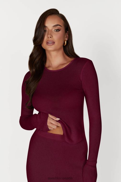 Meshki Wine Maribelle Knit Long Sleeve Top Clothing JN88N889