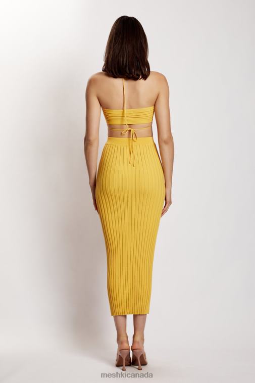 Meshki Yellow Stacey Ruched Knit Halter Top Clothing JN88N984