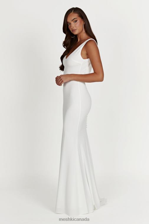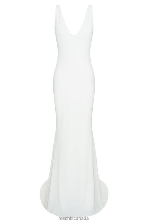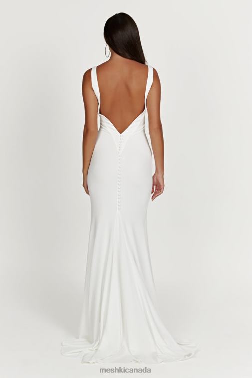 The KYLA Low Back Gown features a demure v-neckline at the front and a low cowl back. It has been crafted from our much-loved crepe fabrication and hugs the form to fully celebrate your figure. It features non-functional buttons, and a fishtail train on the back, creating an hourglass shape that flatters every body type. Pair with neutral accessories to complete the look.