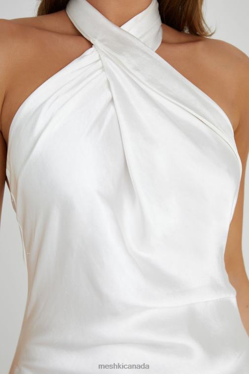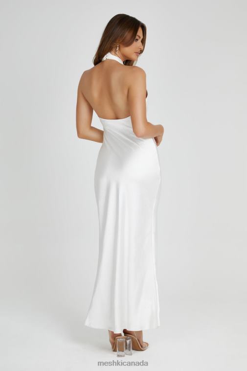The LAURA is a beautiful satin gown with a twisted halter neckline, low, scooped back, and draped, flowing hem. A sleeveless design paired with a halter twist neckline emphasises and flatters the shoulders. The back features a modestly low scooped neckline that flows into an invisible side seam zipper and fabric-covered buttons. Made of 100% unlined polyester, the entirety of the dress's cut and fit flows and drapes like a true goddess gown. This dress will have you feeling powerful and desirable no matter what. Pair with our Lena Three Strap Satin Heels to further elevate the look.