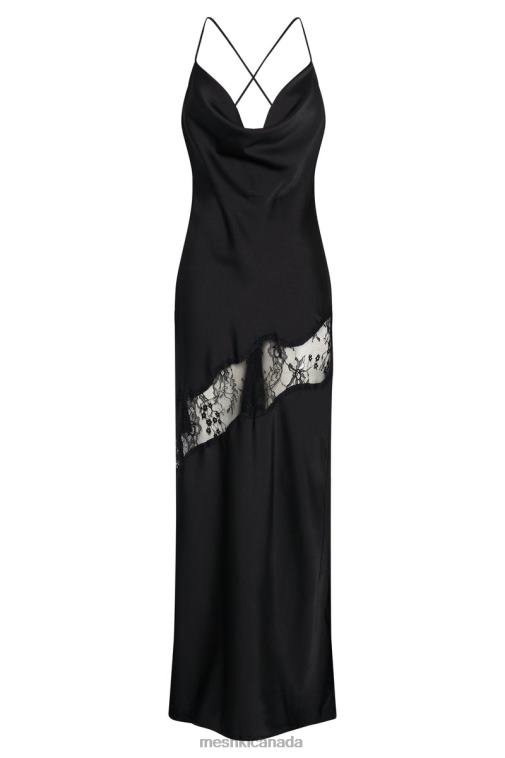Meshki Black Chandra Lace Detail Satin Maxi Dress Clothing JN88N179