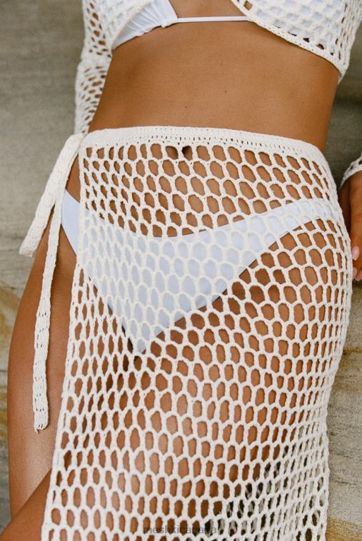 Meshki White Hallie Tie Up Crochet Maxi Skirt Clothing JN88N1537