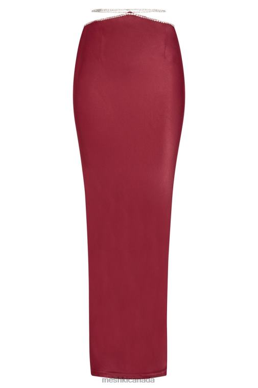 Meshki Wine Dayana Diamante Maxi Skirt Clothing JN88N1383