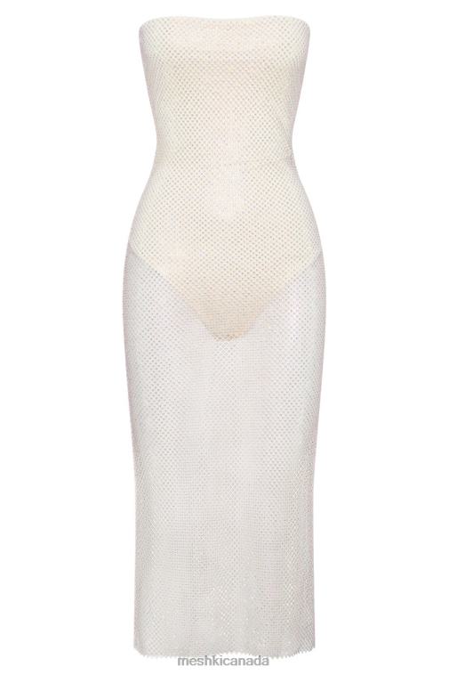 Meshki Cream Nima Diamante Mesh Midi Dress Clothing JN88N492