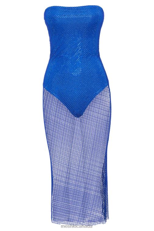 Gorgeous and daring, NIMA holds no punches. She is art, she is luxury, and she knows how to make a statement. Covered in high-quality rhinestones and draped in beautiful elastic mesh, she's a midi dress unlike any other. The bodice is a strapless bodysuit cut high up the hips and clean across the chest. The skirt is a sheer, sleek material that teases your shapely legs. Complement Nima's unique design with a pair of satin platform heels like our Mikaela Satin Platform Heels.