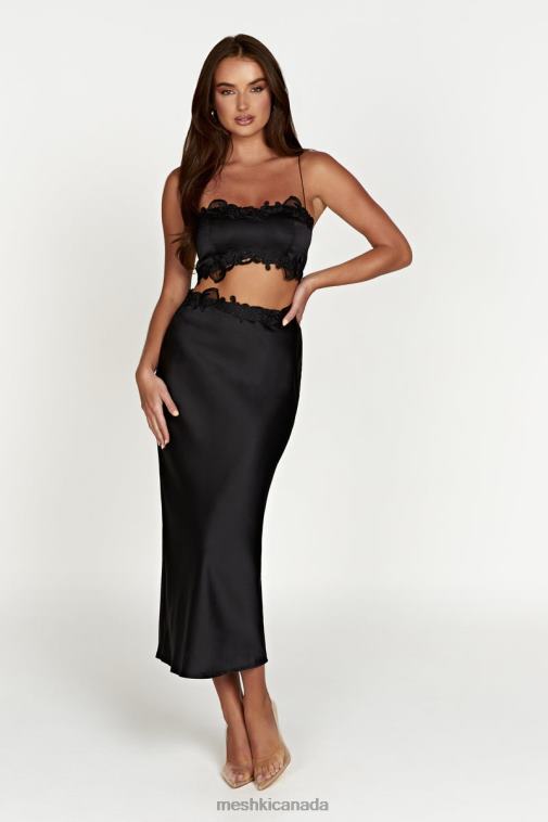 Meshki Black Anika Midi Skirt With Lace Clothing JN88N1397