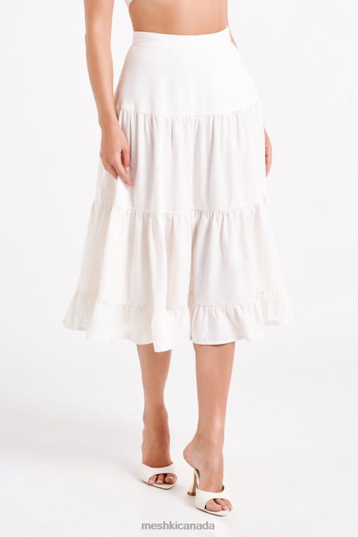 Meshki White Hilaria Tiered Linen Midi Skirt Clothing JN88N1227