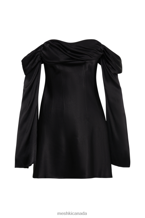 Meshki Black Giselle Off Shoulder Satin Mini Dress Clothing JN88N202