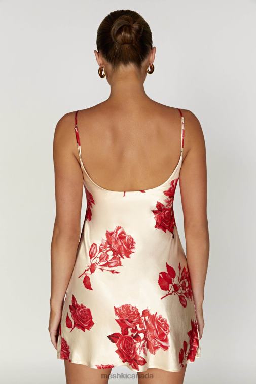Meshki Rose Print Valentina Satin Mini Dress Clothing JN88N316