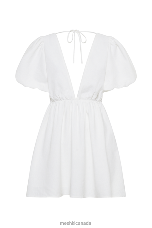 Home| Collections| Mini Dresses| Meshki White Myrah Puff Sleeve Linen Mini Dress Clothing JN88N254