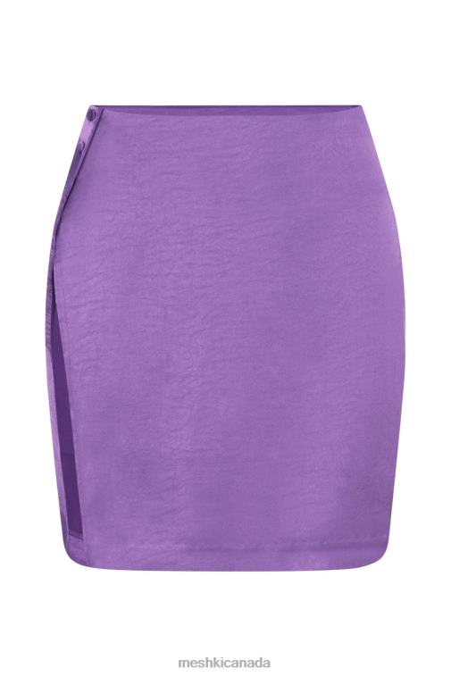 Meshki Purple Romi Asymmetric Wrap Satin Mini Skirt Clothing JN88N1530