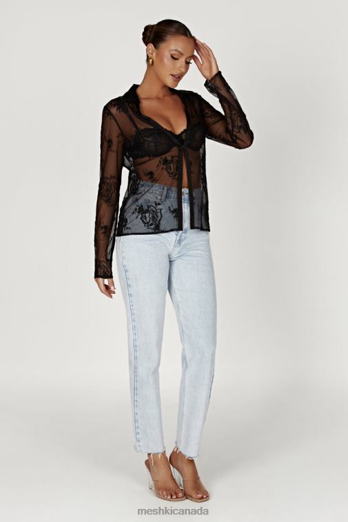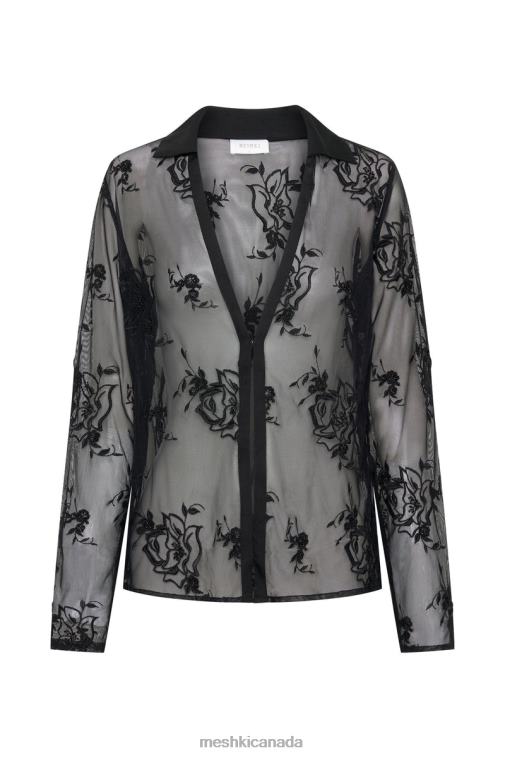 Meshki Black Vivica Embroidered Mesh Shirt Clothing JN88N991