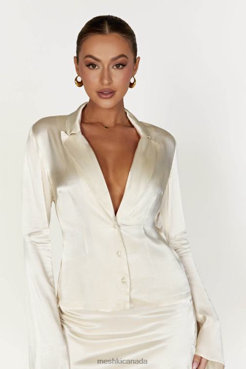 Meshki Ivory Noa Collared Long Sleeve Shirt Clothing JN88N876