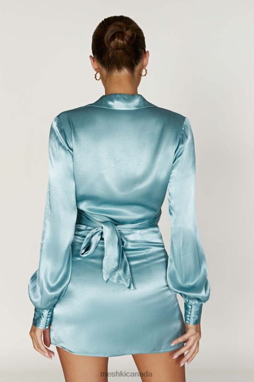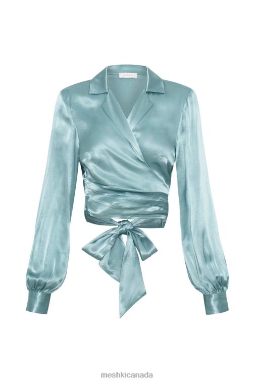 Meshki Powder Blue Amia Satin Wrap Shirt Clothing JN88N1037