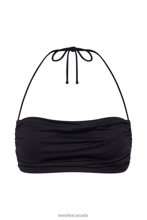 Meshki Black Amber Ruched Halter Crop Top Clothing JN88N1151