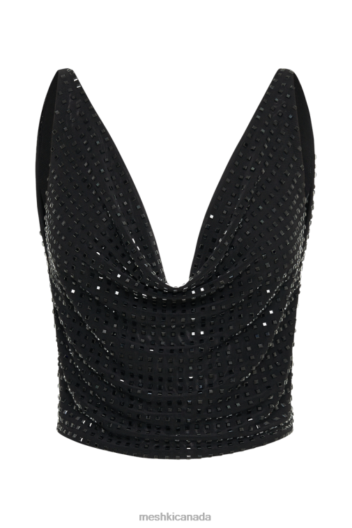 Meshki Black Ellery Square Diamante Cowl Top Clothing JN88N796