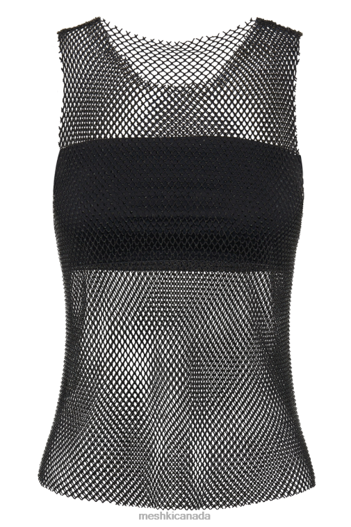 Meshki Black Emerson Diamante Mesh Tank Top Clothing JN88N802