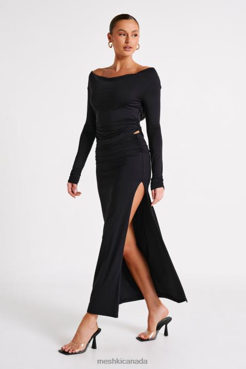 EMMA is a fitted long sleeve top that features a back necktie and a cowl neckline for its low, open back. Its ruched sleeve hems and waistline are a perfect contrast to the fabric's smooth, clean lines and texture, making this top's shape simultaneously stylish and relaxed. Even better: you can wear it both on the shoulder as part of a laid-back ensemble and off the shoulder for something a little more alluring on your evenings out. Pair it with the Emma Recycled Nylon Maxi Skirt or a pair of low-waist trousers for an elegant, captivating look.