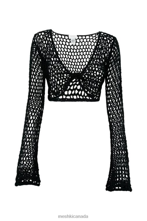 Meshki Black Hallie Twisted Cropped Crochet Top Clothing JN88N1133