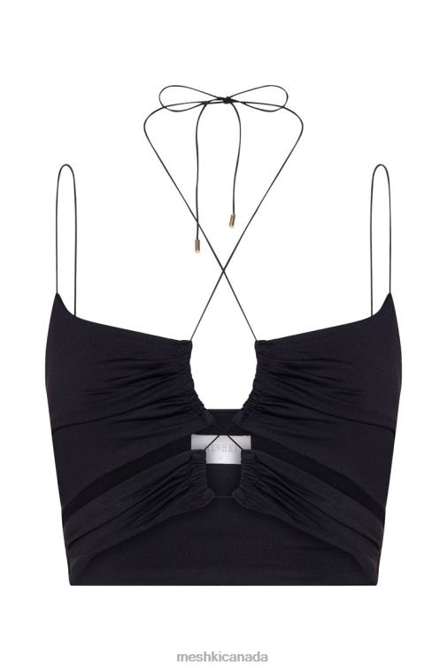 Meshki Black Phoenix Cut Out Ruched Crop Top Clothing JN88N1174